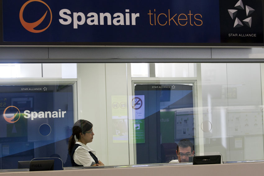 Una parte de la plantilla de Spanair deberá trabajar este fin de semana para atender el servicio de atención al cliente y recolocar a los viajeros afectados en vuelos de otras compañías aéreas. Los trabajadores han cobrado con normalidad las nóminas hasta diciembre, pero debido a la situación financiera que atraviesa la aerolínea no está claro que los empleados puedan cobrar sus retribuciones de enero.
