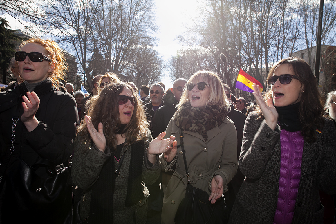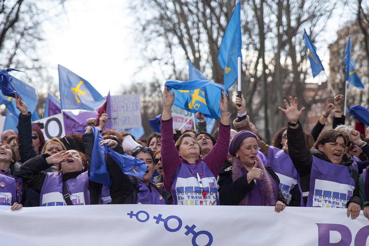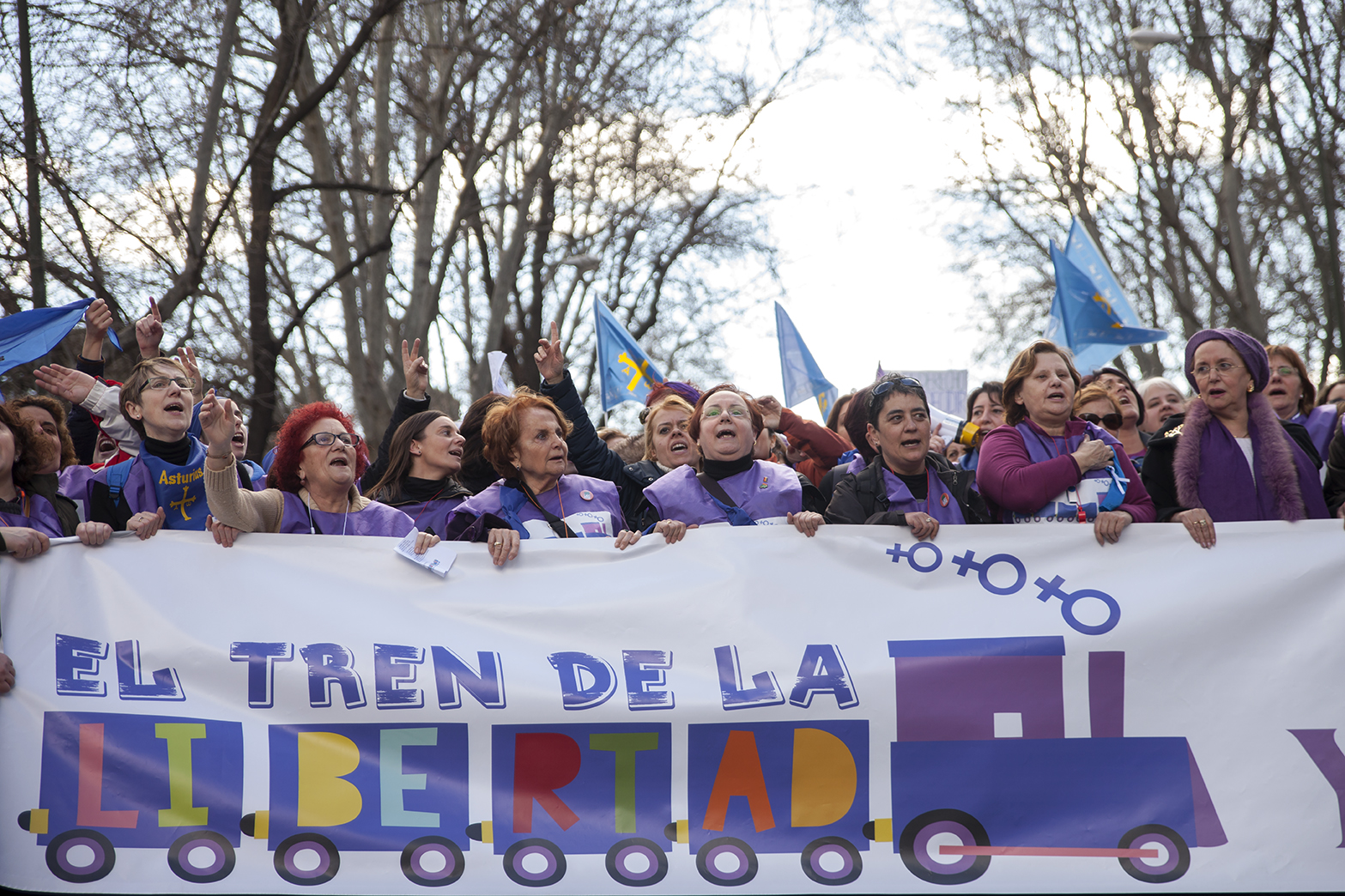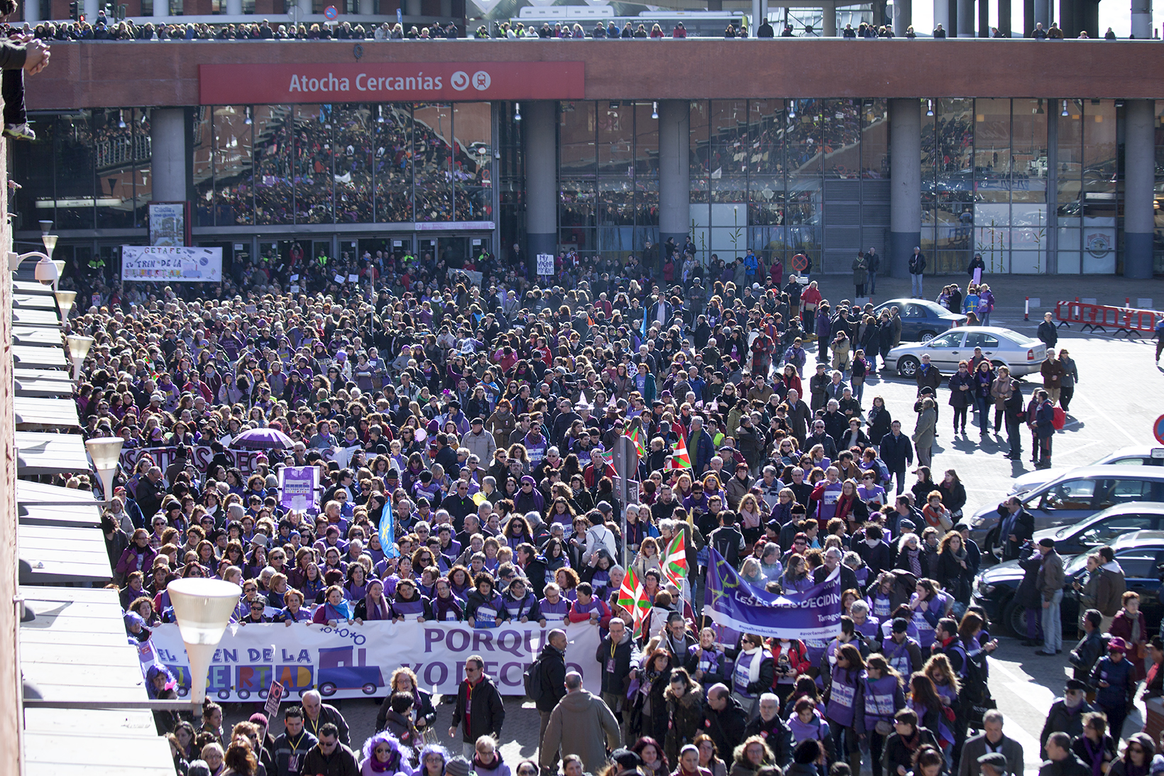 Antes de dar inicio a la manifestación, que ha culminado en el Congreso de los Diputados, diversos representantes de partidos políticos, sindicatos, asociaciones de mujeres y el mundo de la cultura han intervenido en un acto que se ha celebrado en el ‘hall’ de la estación de Atocha.