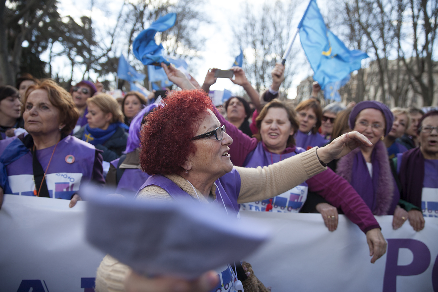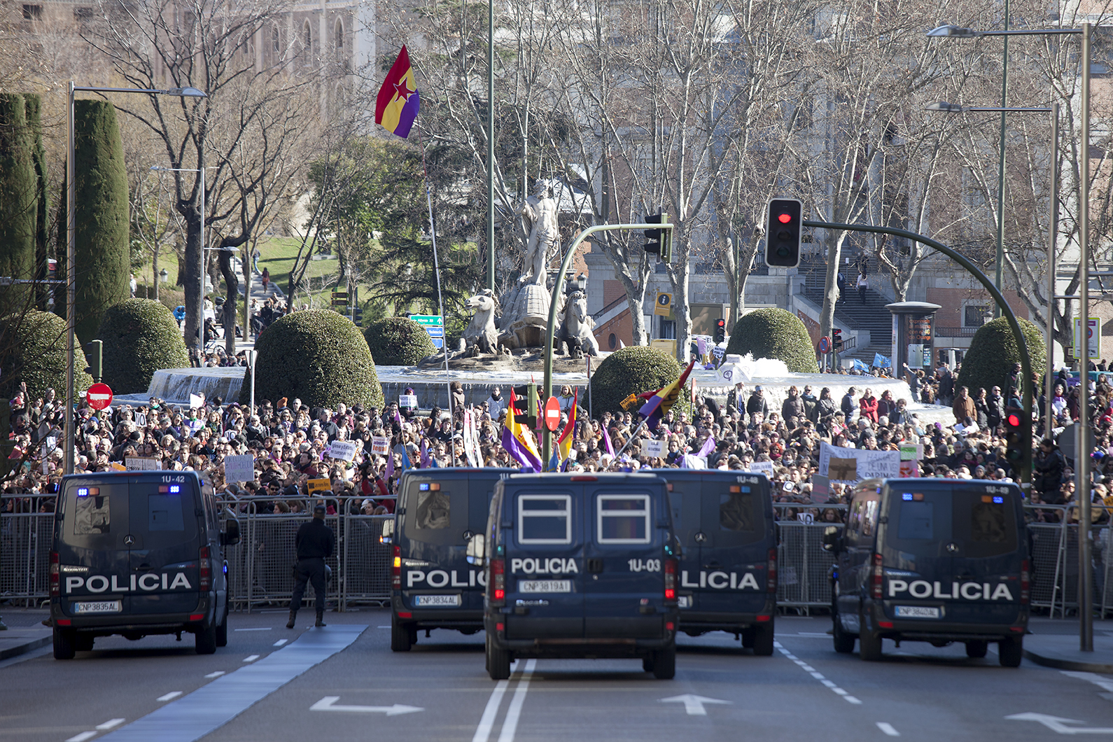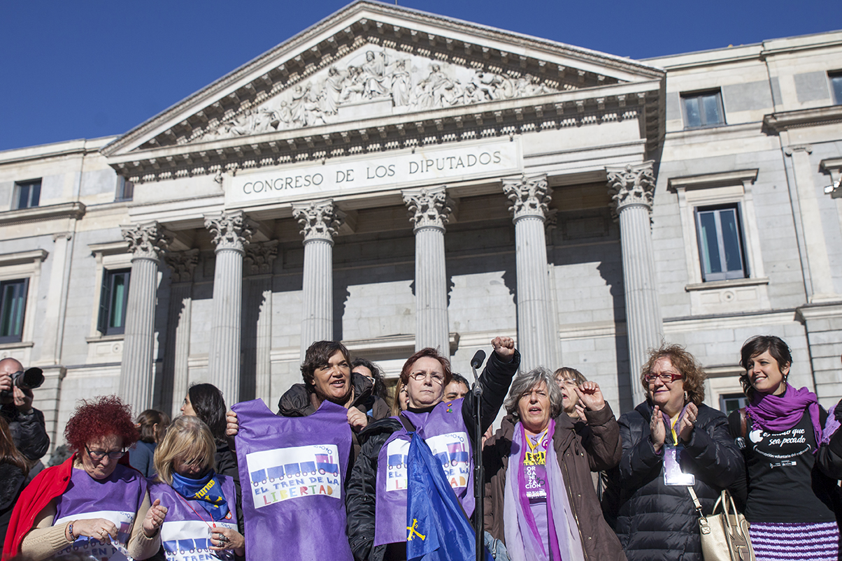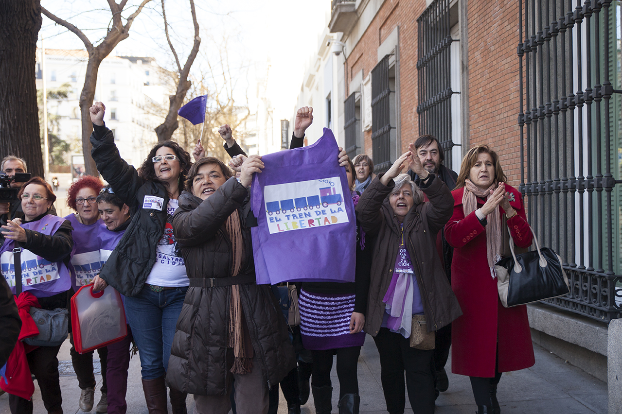 Antes de dar inicio a la manifestación, que ha culminado en el Congreso de los Diputados, diversos representantes de partidos políticos, sindicatos, asociaciones de mujeres y el mundo de la cultura han intervenido en un acto que se ha celebrado en el ‘hall’ de la estación de Atocha.