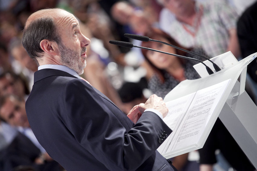 Alfredo Pérez Rubalcaba, hasta ahora Vicepresidente Primero y Ministro del Interior del Gobierno español, fue proclamado hoy candidato del Partido Socialista (PSOE) de José Luis Rodríguez Zapatero a las próximas elecciones generales en España, previstas para marzo de 2012