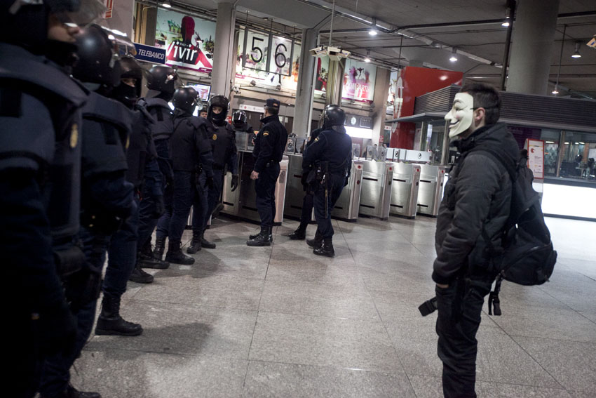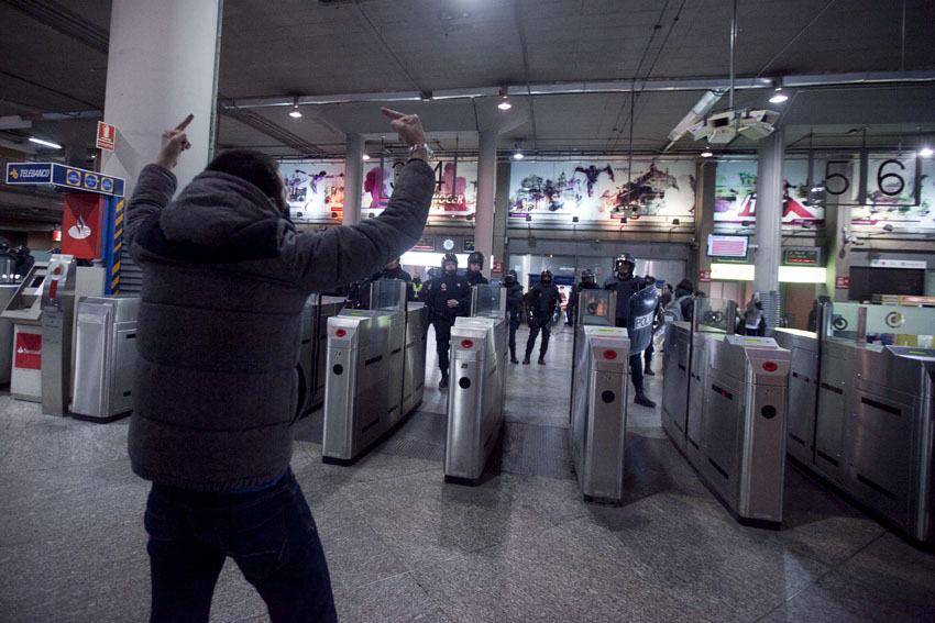 Aunque en un principio su intención era llegar a las cercanías del Congreso de los Diputados, no pudieron hacerlo debido a la presencia policial que custodiaba el acceso a la Carrera de San Jerónimo. Tras cortar de nuevo el tráfico durante unos minutos a la altura del monumento a las víctimas del 11-M, los manifestantes intentaron acceder a la estación de Atocha e intentar una acción de «yo no pago», a lo que los antidisturbios contestaron con el blindaje de la estación. Finalmente, los que quedaban decidieron poner fin a la protesta, que acabó sin incidentes a las once de la noche.