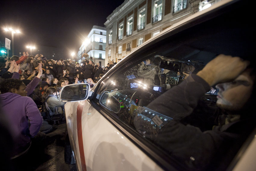 Los concentrados se dieron cita en Sol a las 19.30 horas a través de las redes sociales, y ocupando más de la mitad de la plaza y se han vivido algunos momentos de tensión, sobre todo cuando los manifestantes han cortado el tráfico en la Puerta del Sol y se han acercado al cordón policial que protegía la sede de la Presidencia de la Comunidad de Madrid. Sobre las 20.45 horas los concentrados abandonaron Sol y se dirigieron hasta la Gran Vía, donde lograron cortar el tráfico.
